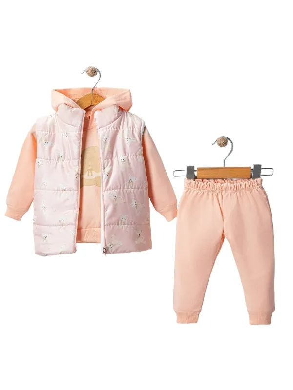 Compleu iarna fetita cu vesta si hanorac cu gluga